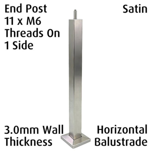 Material: Satin 316 StainlessA 50x50mm square stainless steel end post in a satin finish with a 3mm wall thickness. Ideal for use with horizontal wire balustrade on a balcony o...