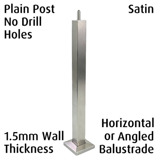 Square Plain Post (1.5mm) for Angled or Horizontal Balustrade - Satin